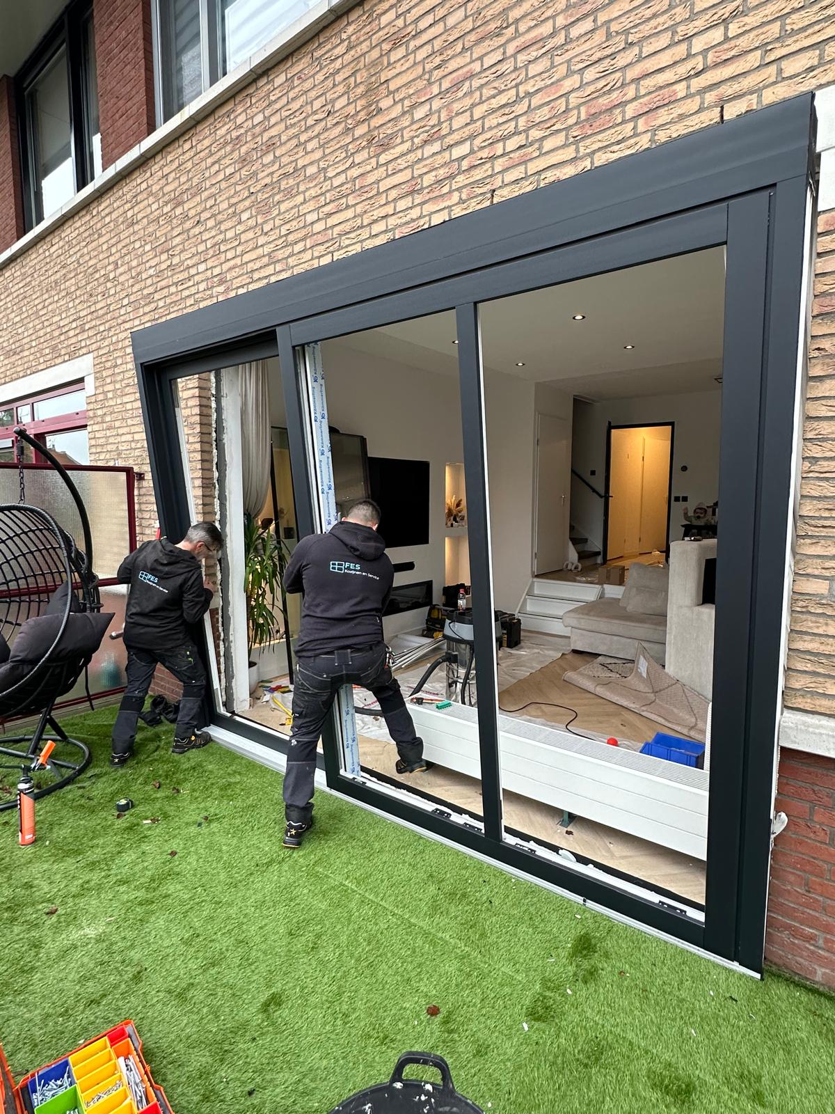 Het kiezen van de pui is stap één, maar de plaatsing is waar het échte verschil wordt gemaakt. Een hefschuifpui is zwaar. Er gaat honderden kilo’s glas in. Als dit niet waterpas en spanningsvrij wordt gemonteerd, krijg je na verloop van tijd problemen met schuiven of sluiten.